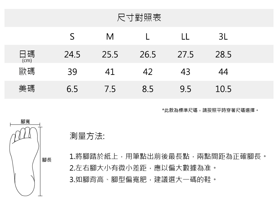 尺寸 : S~LLL